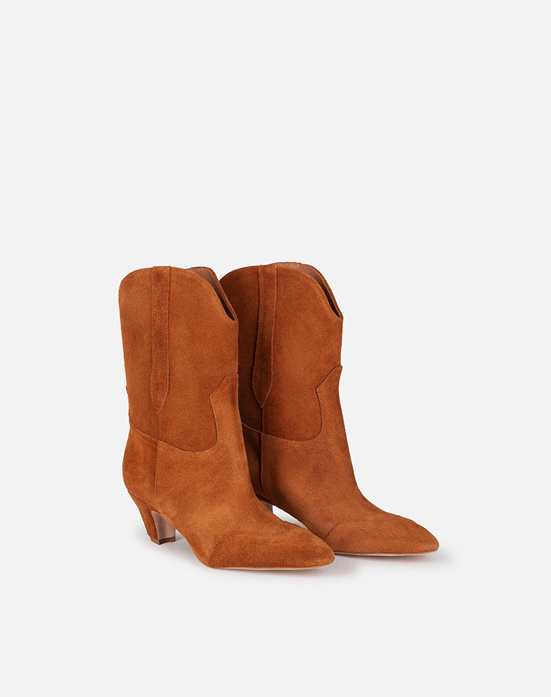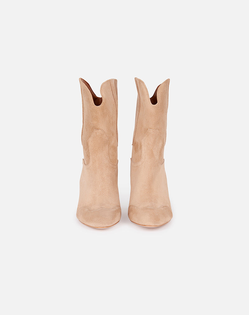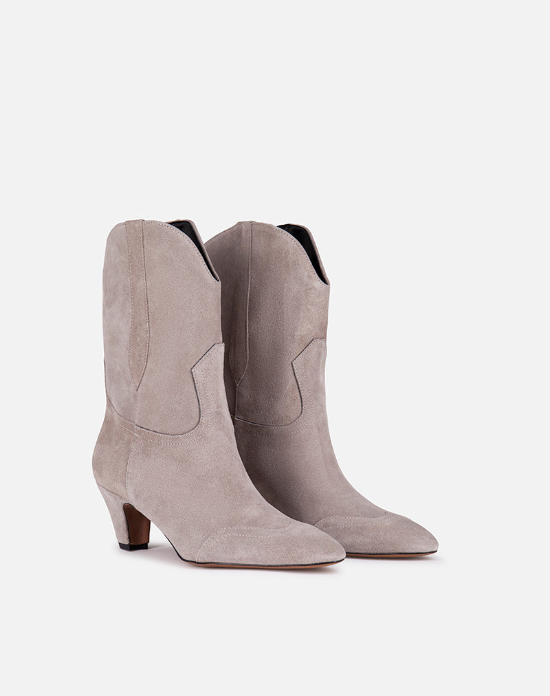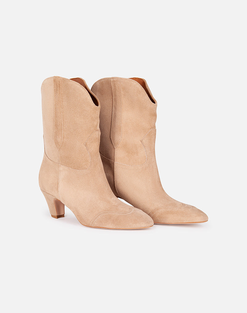 Stivaletto, modello texano realizzato in morbido camoscio. Impunture sul davanti.