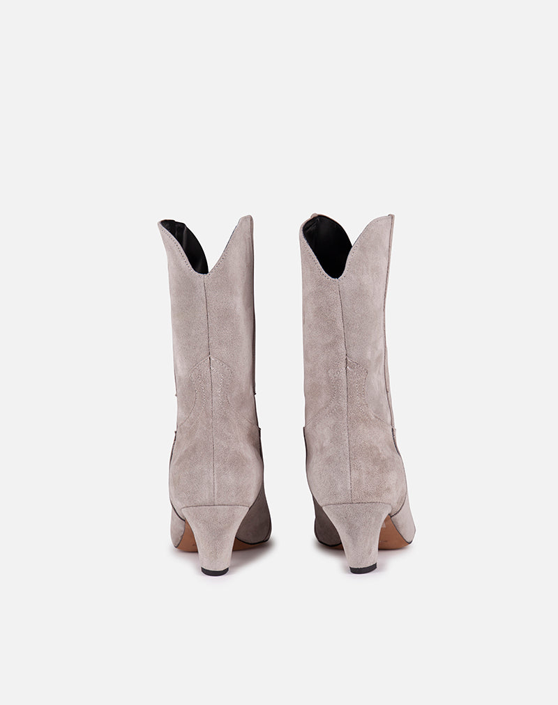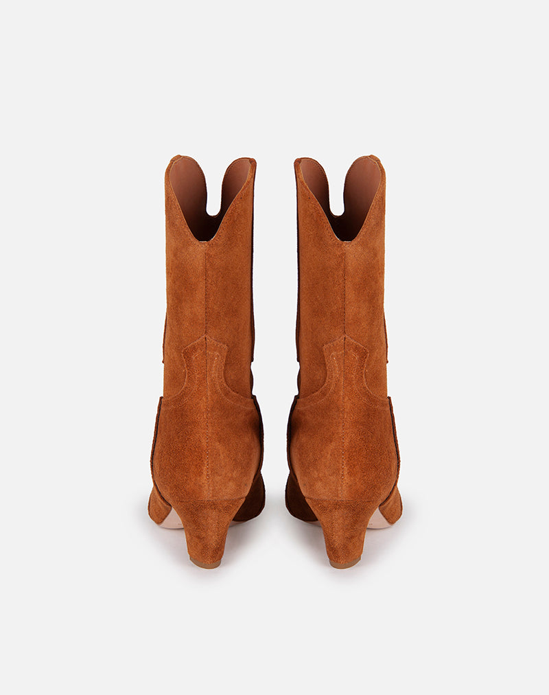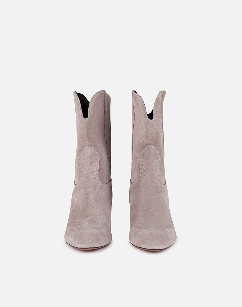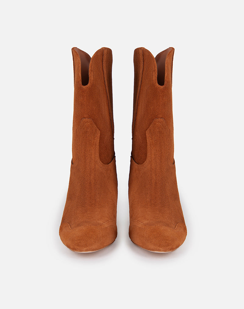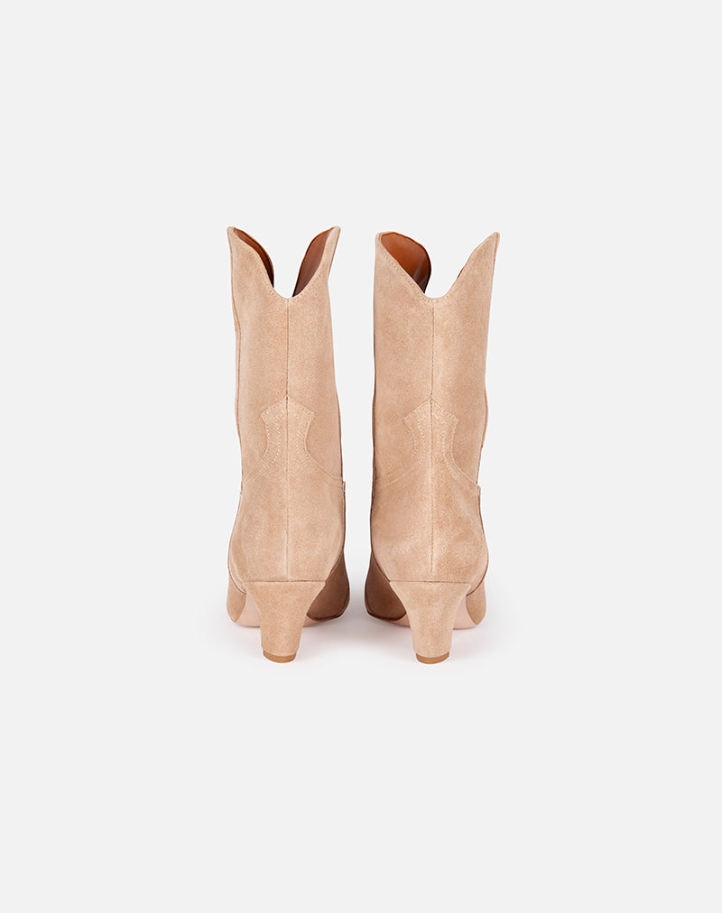 Stivaletto, modello texano realizzato in morbido camoscio. Impunture sul davanti.