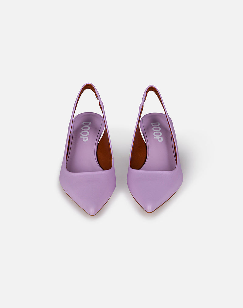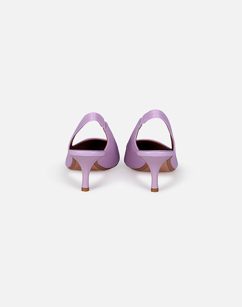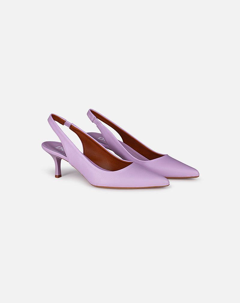 Slingback relizzata in morbida pelle colorata. Modello a punta, tacco sottile