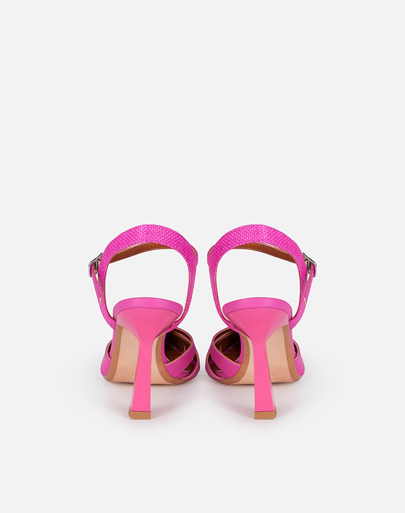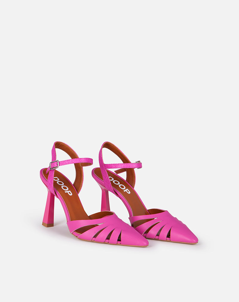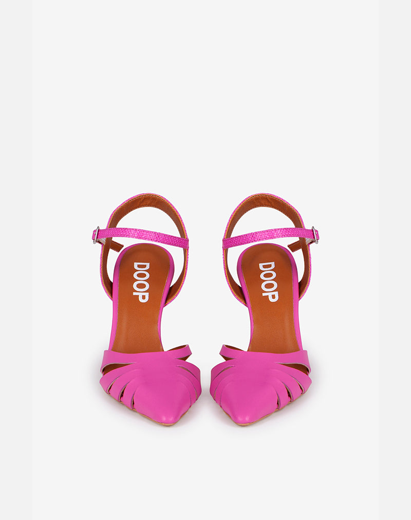 Scarpa a punta con intagli modello slingback, parte anteriore in morbida pelle, cinturino in canvas.