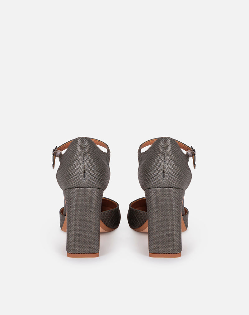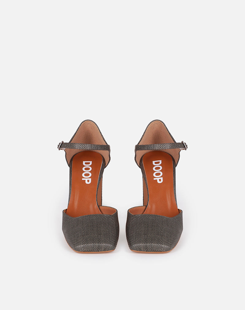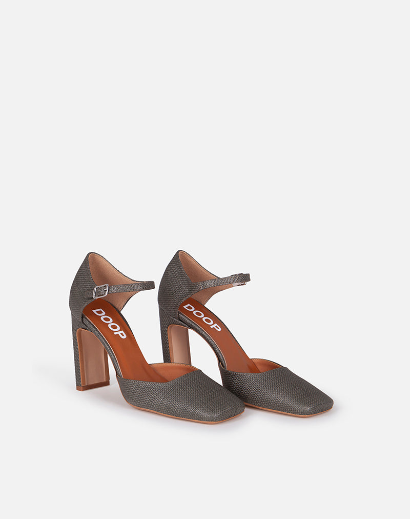 Scarpa in canvas, tacco a forma rettangolare. Modello a punta quadrata.
